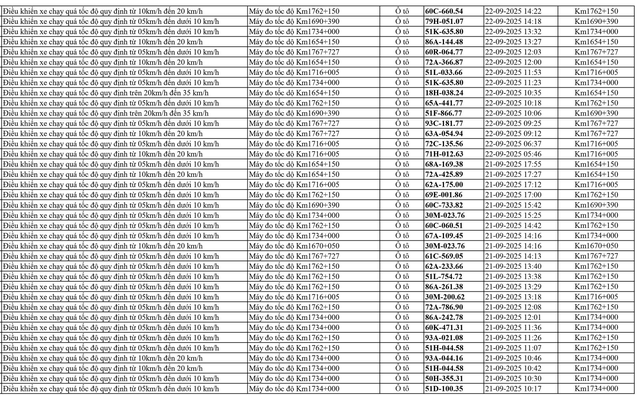 Theo thông báo của Phòng Cảnh sát giao thông Công an tỉnh Lâm Đồng, từ ngày 21/9/2025 đến ngày 31/10/2025 đã phát hiện 709 trường hợp phương tiện vi phạm trật tự an toàn giao thông qua hệ thống camera giám sát giao thông và phương tiện thiết bị kỹ thuật nghiệp vụ. Danh sách cụ thể như sau: