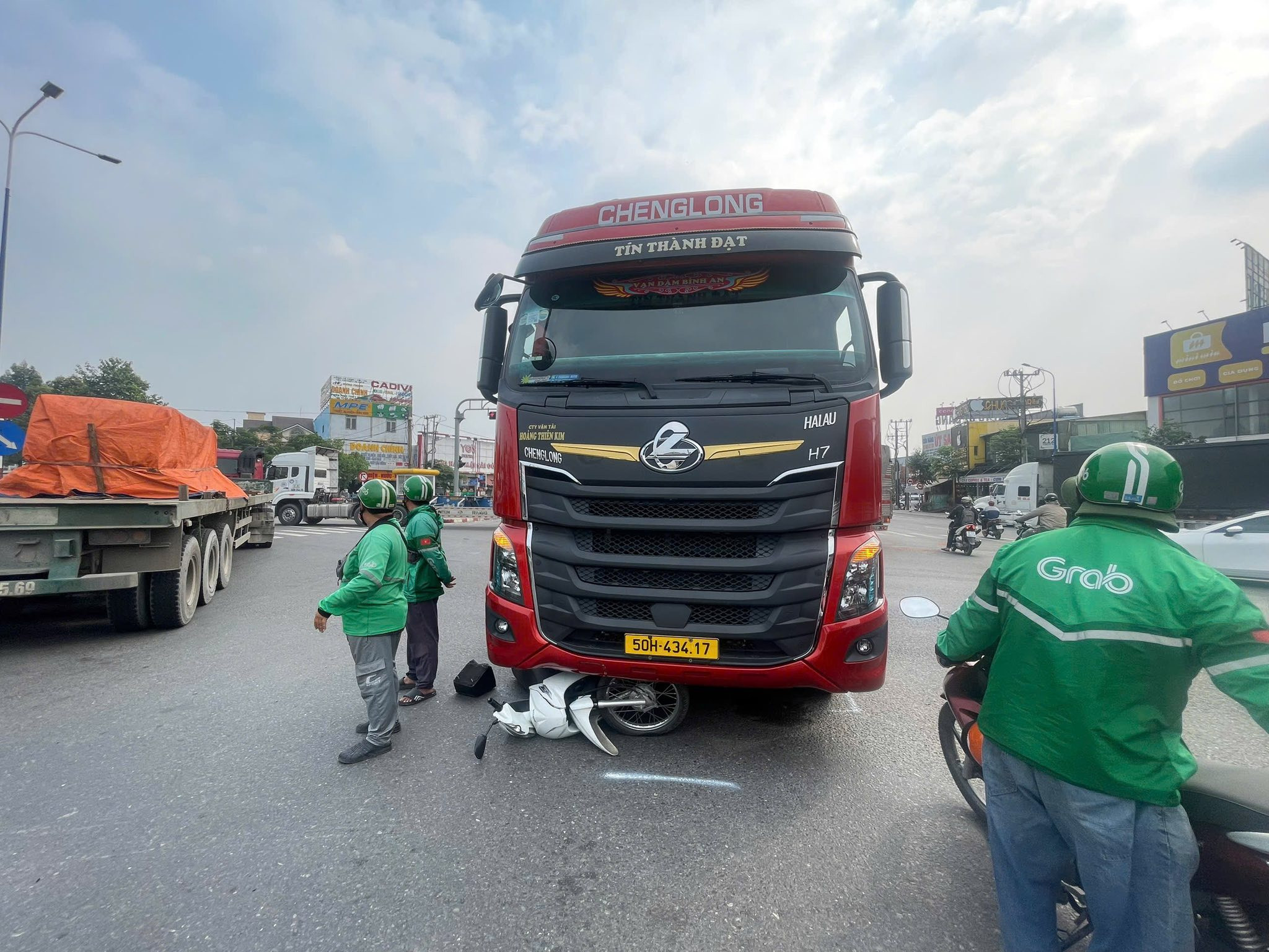 Đường ĐT 743 ngay ngã 6 An Phú, chị gái đi xe wave biển 36F1 chuyển làn để qua đường, mà không ngoái lại nhìn gì hết, xảy ra va chạm với xe đầu kéo.