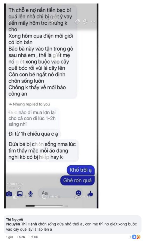 Đến tối muộn, không thấy vợ con trở về, điện thoại không liên lạc được, linh tính có chuyện chẳng lành, người chồng và gia đình đã tá hỏa đi tìm và báo công an.