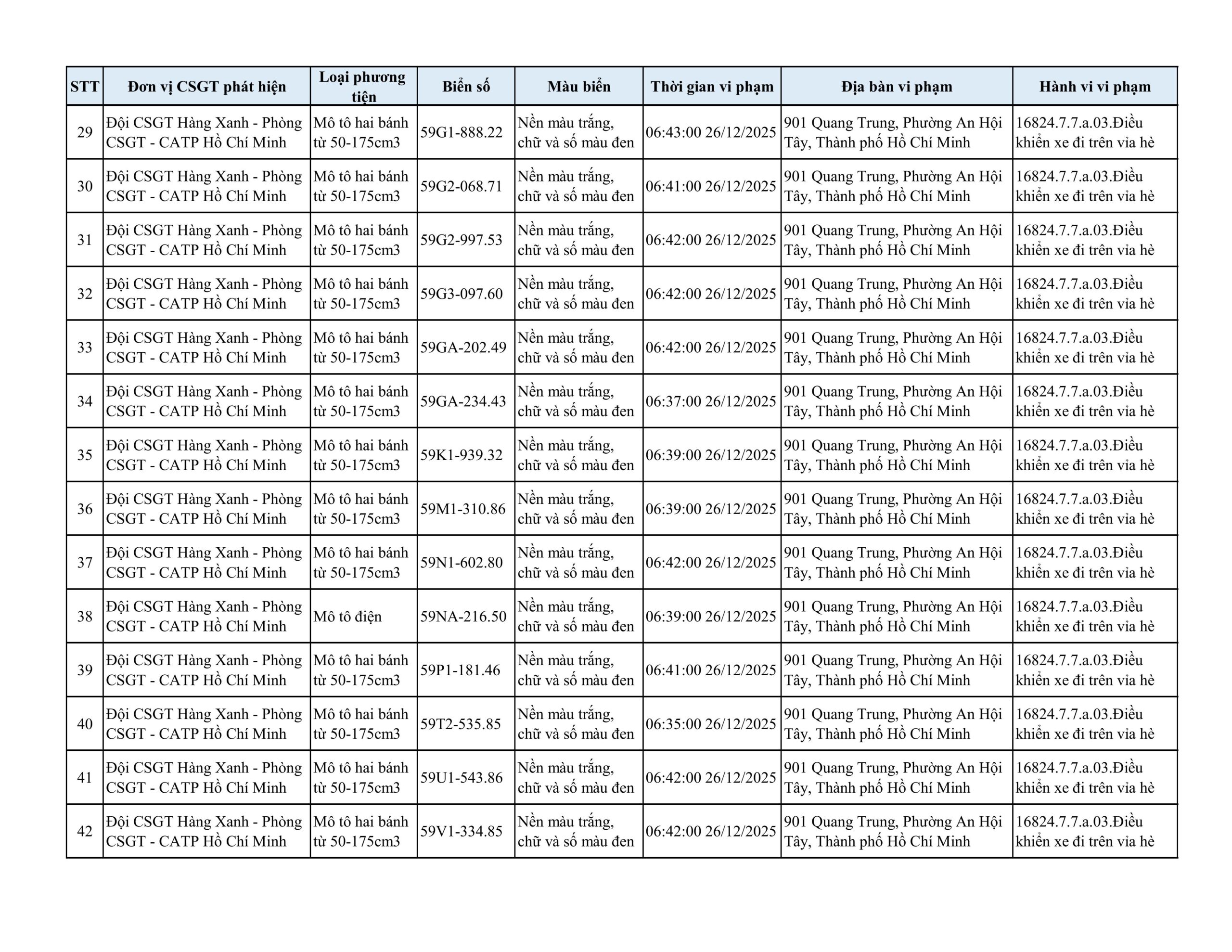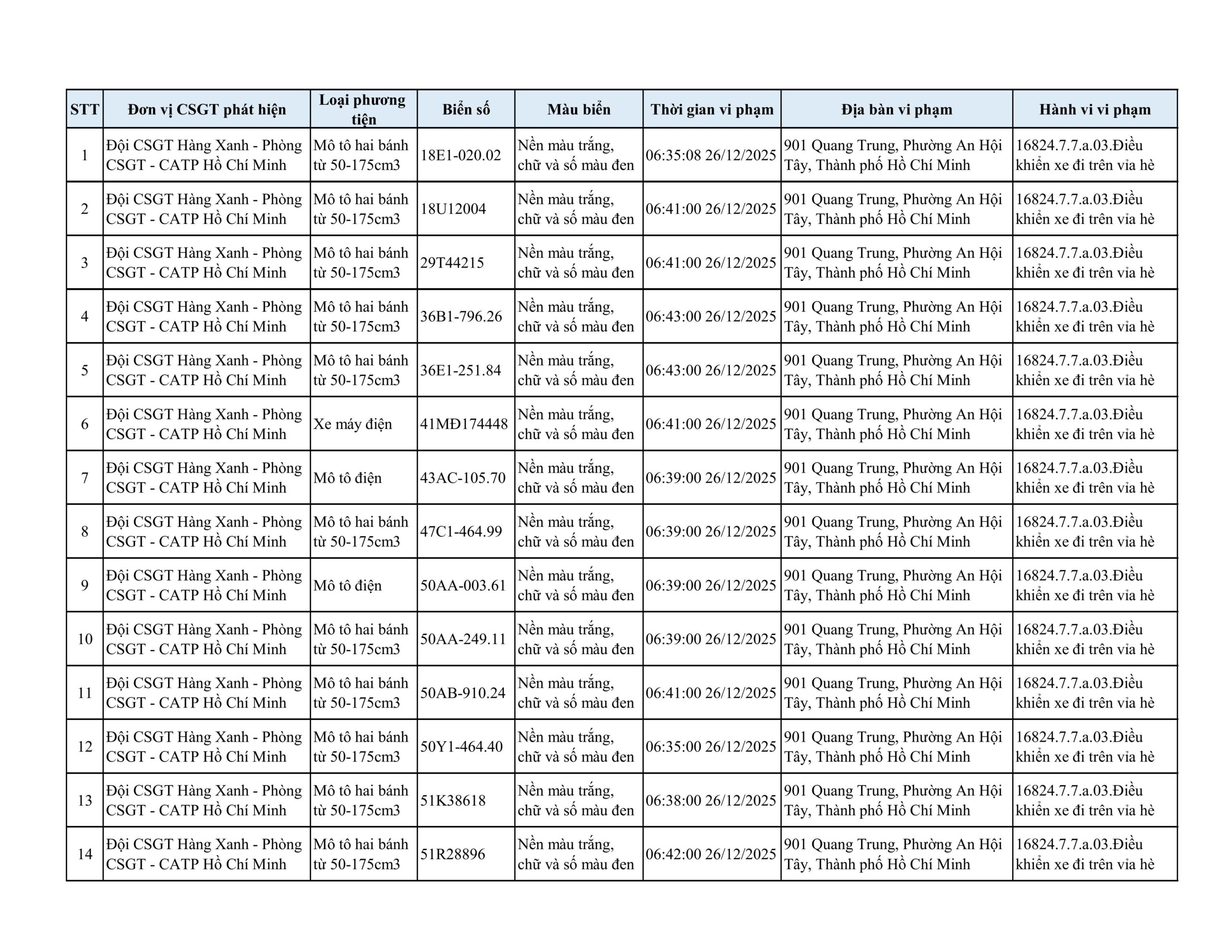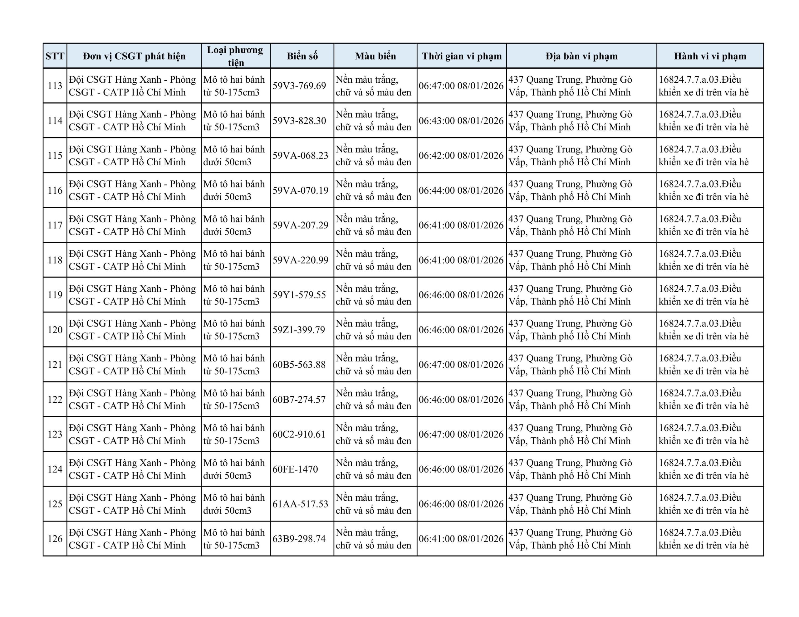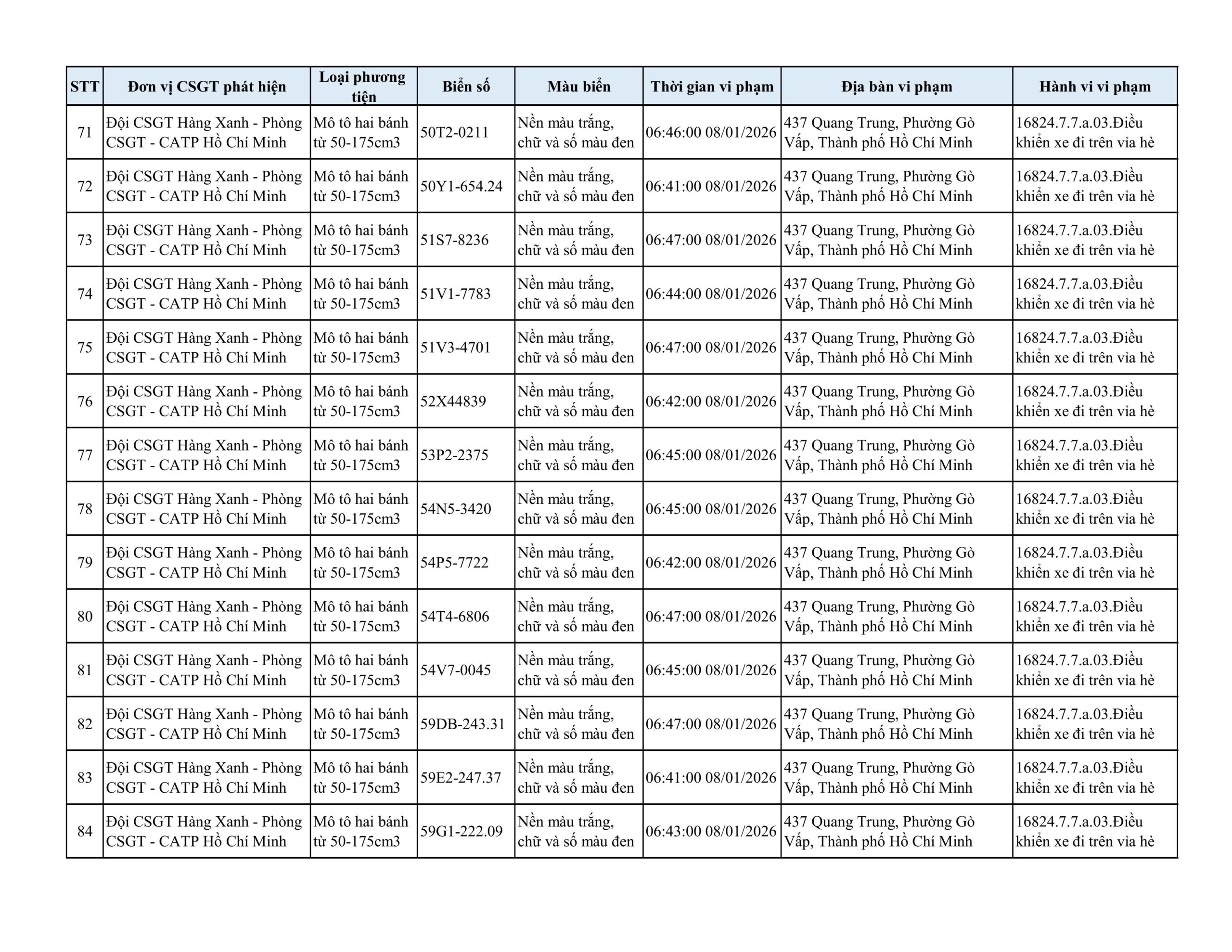 Danh sách 40 trường hợp xe máy vi phạm như sau:
