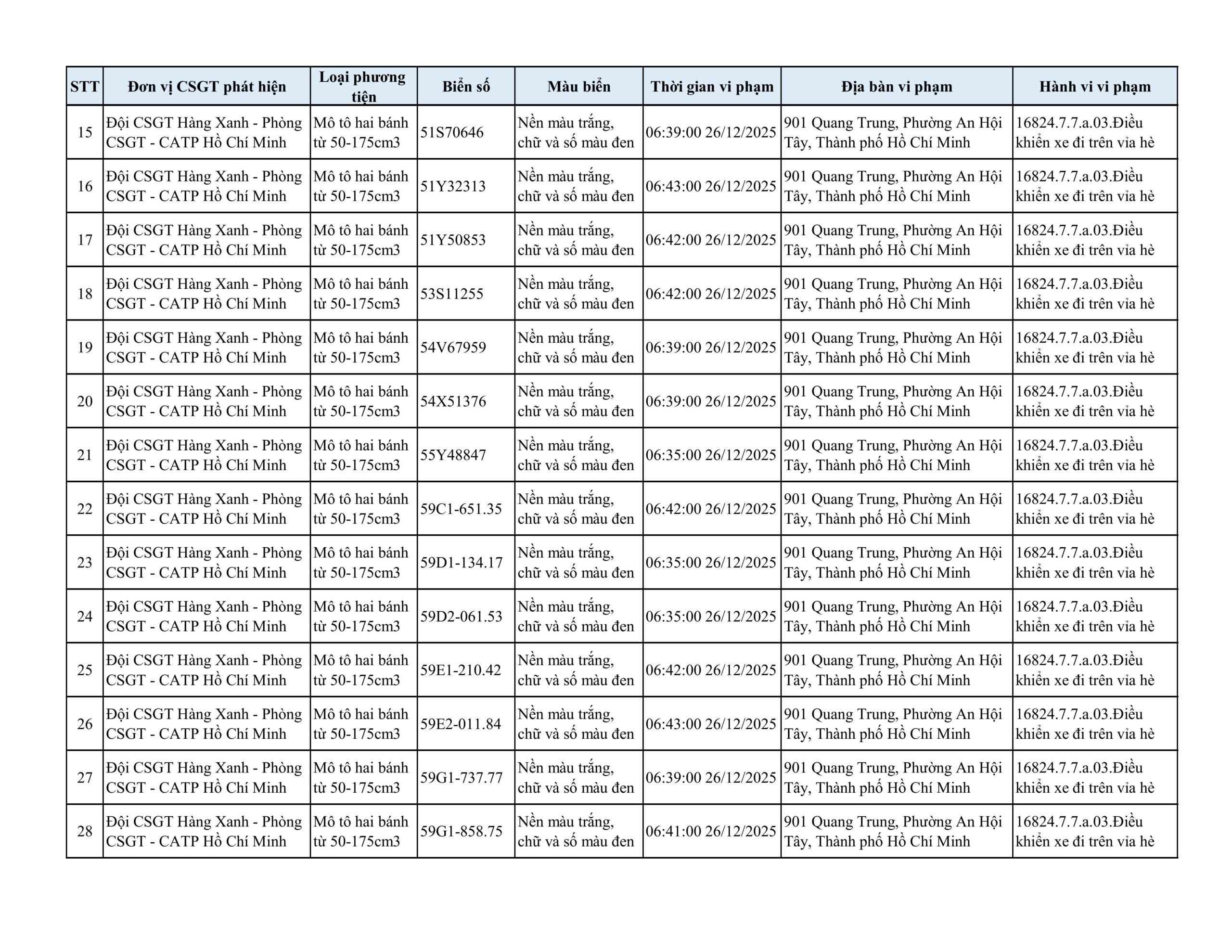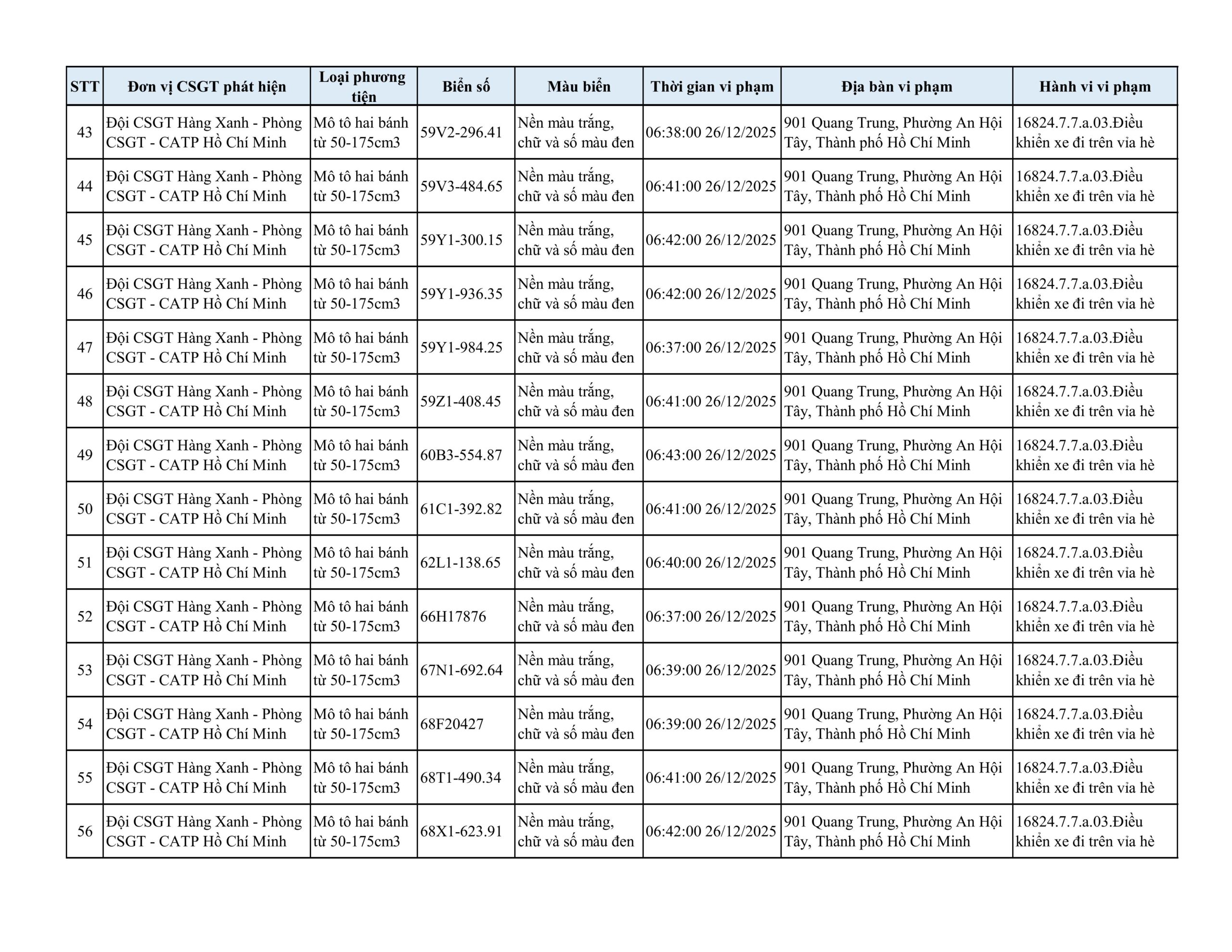 Danh sách 48 trường hợp xe máy vi phạm như sau:
