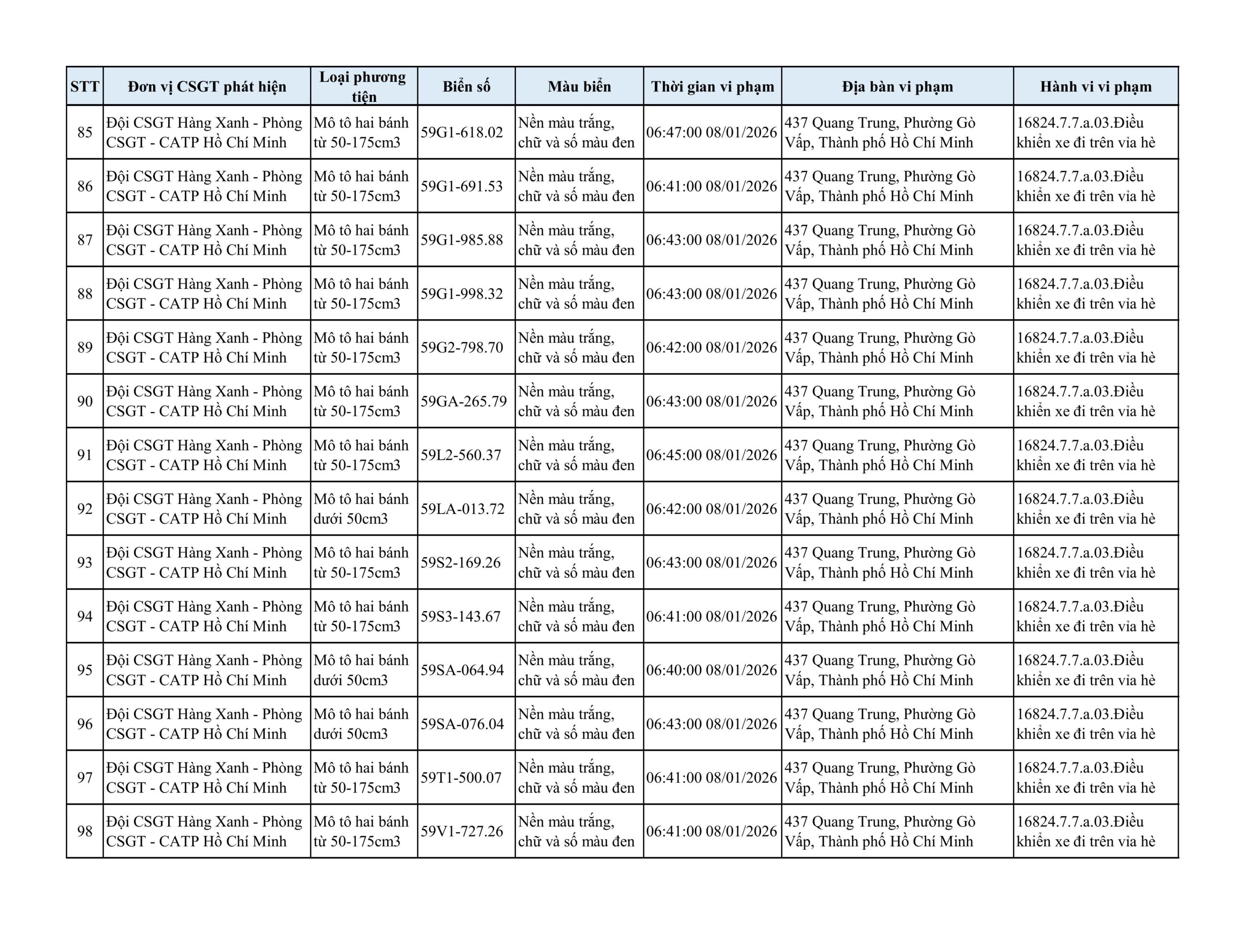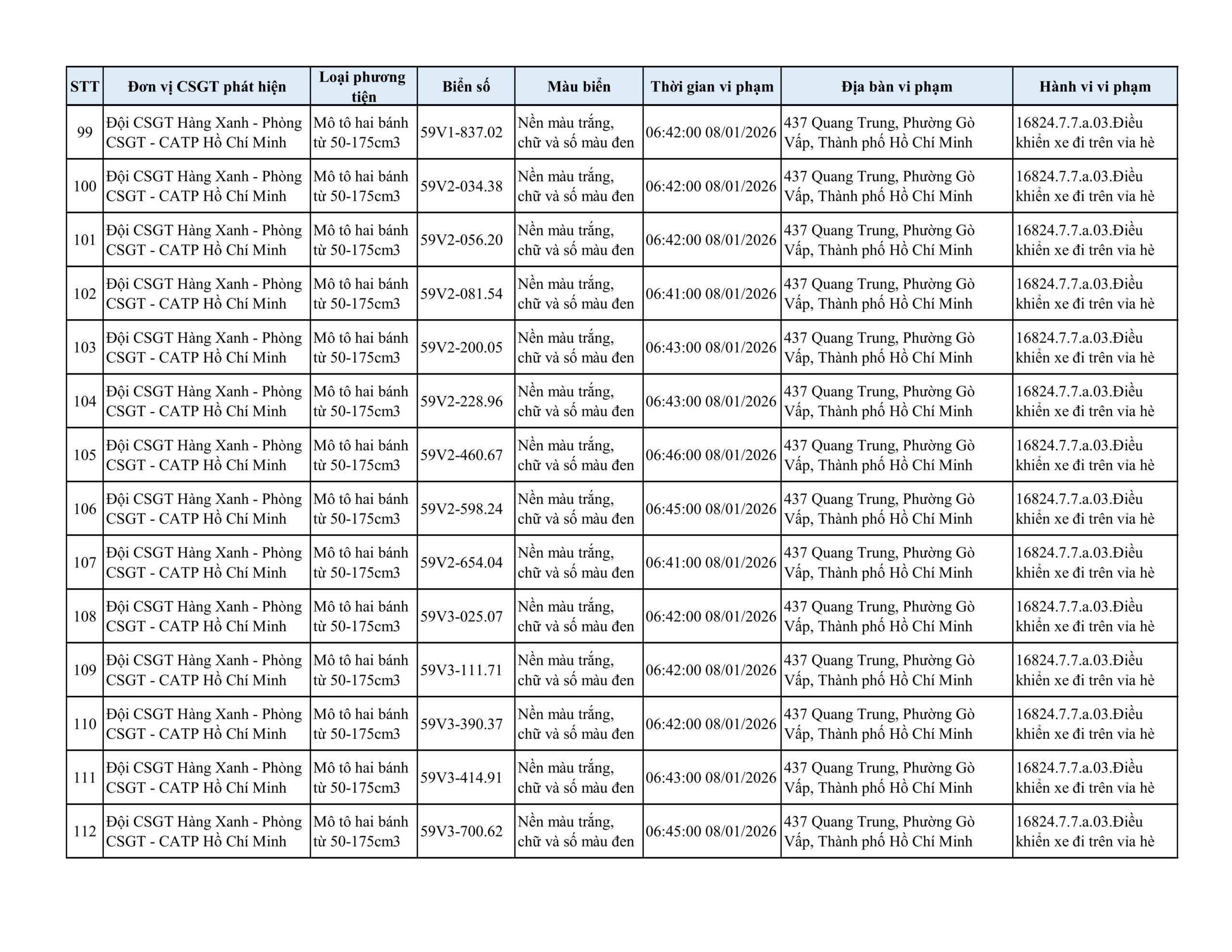 Ngày 21-1, Phòng CSGT Công an TPHCM đã công bố danh sách 138 xe máy bị phạt nguội trên đường Quang Trung (thuộc 2 phường Gò Vấp và An Hội Tây).