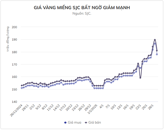 Hiện tại, dù đã giảm hơn 10 triệu đồng từ đỉnh, giá vàng miếng SJC vẫn cao hơn khoảng 6 triệu đồng so với đầu tuần. Còn nếu so với đầu năm 2026, giá giao dịch hiện tại vẫn cao hơn 27 triệu đồng, tương đương mức tăng 18%.