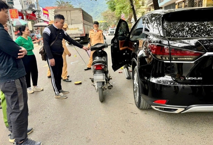 Lúc này, xe mô tô biển kiểm soát 28M1-049.28 do chị L.T.M.T (SN 1998, trú tại xã Mai Hạ, tỉnh Phú Thọ) điều khiển, chở theo phía sau cháu V.A.Q (SN 2021), lưu thông cùng chiều đã va chạm với cánh cửa xe ô tô vừa mở.