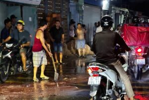 Lúc này người dân thấy hai người bị nhóm đối thủ chém, nằm gục dưới đường liền hô hoán. Tại hiện trường, anh Nguyễn Hoài Việt Lắm, 30 tuổi đã tử vong và Nguyễn Văn Được (39 tuổi, cậu của Lắm, cùng quê An Giang) bị thương nặng.