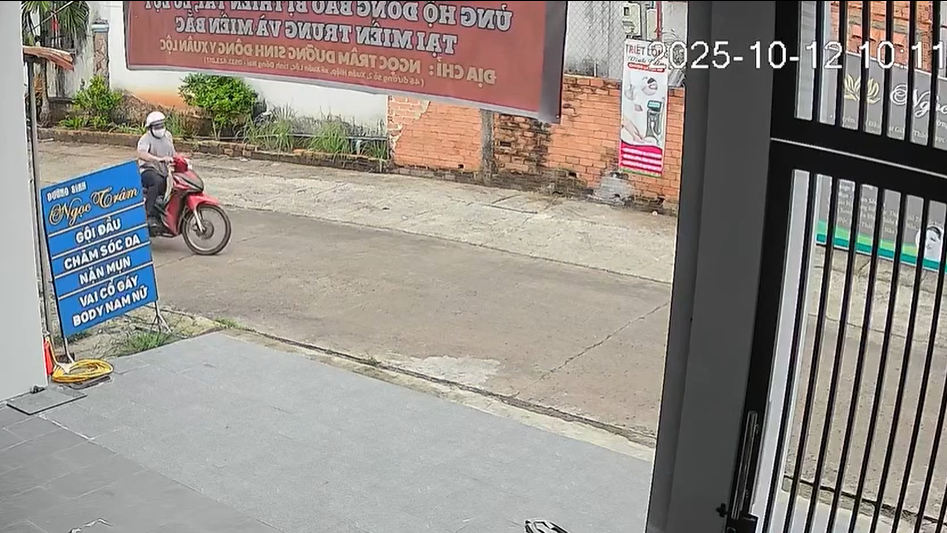 Theo hình ảnh từ camera an ninh, lúc 10h11 cùng ngày, người đàn ông chạy xe máy màu đỏ đen, mặc áo thun trắng, đội mũ bảo hiểm trắng dừng lại hỏi mua vé số của một người đàn ông trung niên. Khi người bán vừa đưa xấp vé ra, đối tượng này bất ngờ giật lấy rồi tăng ga bỏ chạy.