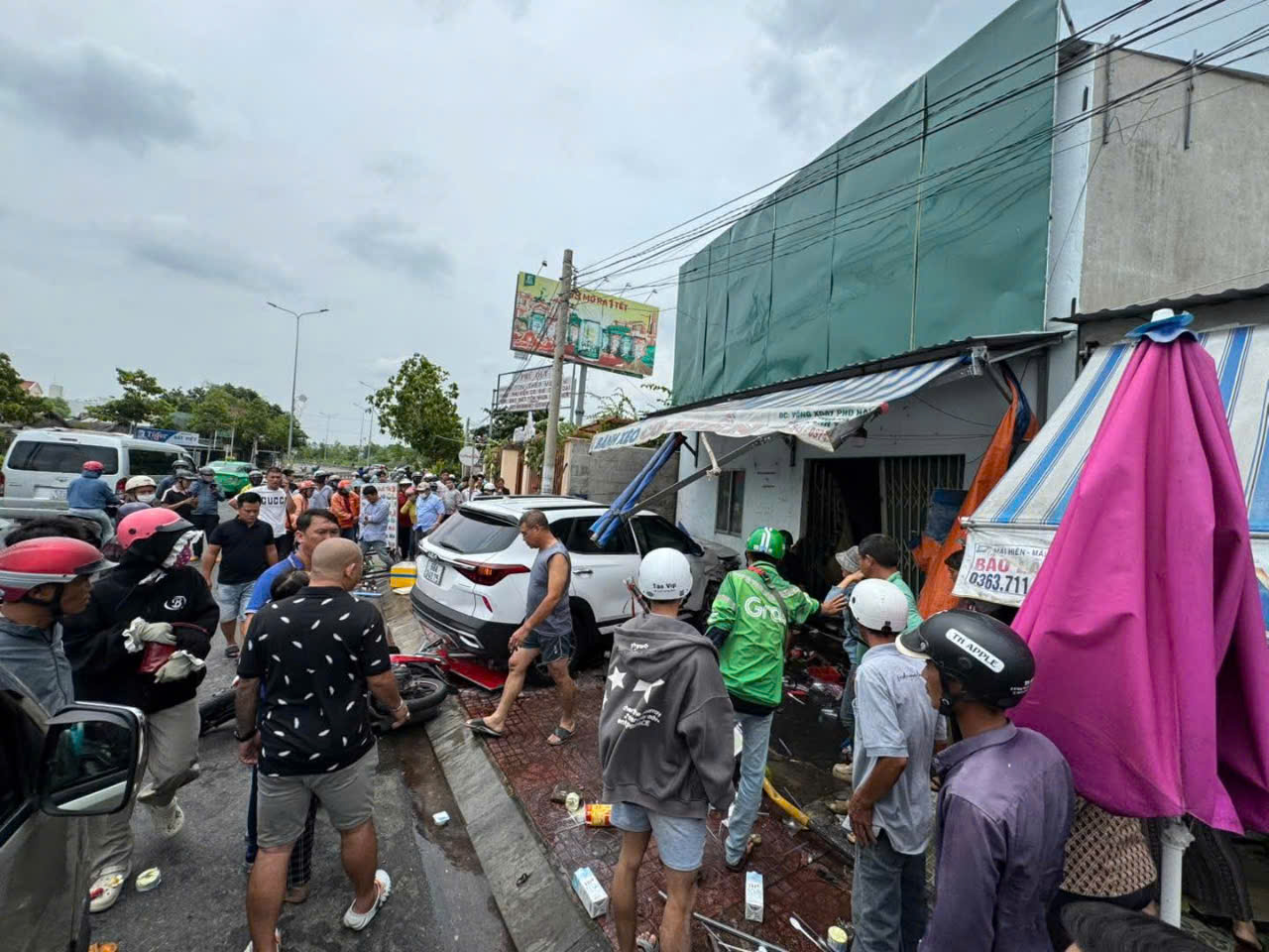 Chưa dừng lại đó, chiếc xe ô tô này còn lao lên lề đường, tiếp tục đâm vào một quán bánh xèo gần đó khiến một người (chưa xác định danh tính) đang ngồi trước nhà chết tại chỗ và một người đứng cạnh đó bị thương.