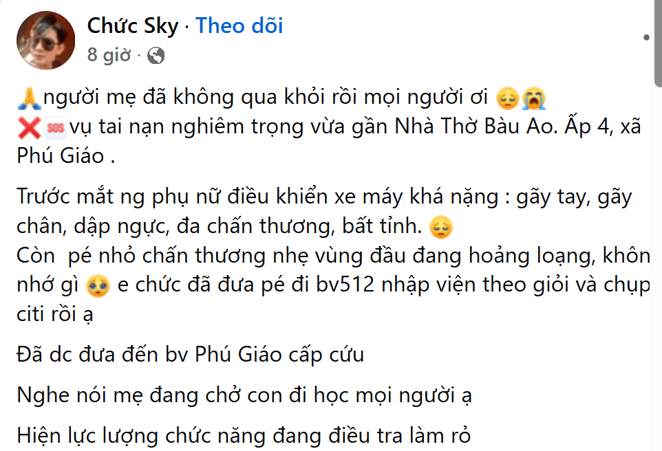 mẹ chở con đi học varcham với xe tải, ng mẹ đã ko qua khỏi Tai nạn ở gần Nhà Thờ Bàu Ao, ấp 4, xã Phú Giáo, Tp.HCM nghe bảo mẹ chở con đi học, người mẹ k qua khỏi http://cafe60giay.com/wp-content/uploads/2025/10/K515bIha1.mp4 Mn chạy xe cẩn thận ạ Nước giặt quốc dân không cần nước xả vẫn thơm, hơn 1,2 triệu người dùng Shopee cho 5 sao!