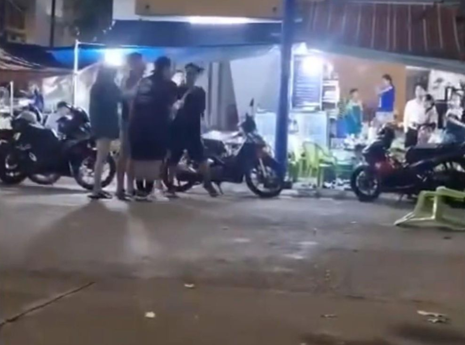 Người này cầm dao đi xung quanh quán, có lời lẽ đe dọa, hành hung nhóm người đang ăn. Chỉ khi những người khác can ngăn thì thanh niên mới dừng lại.