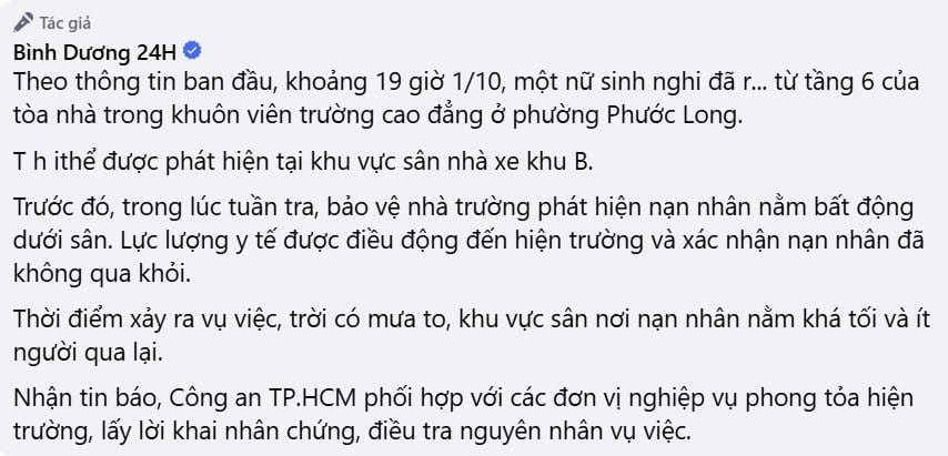 Phát hiện nữ sinh viên tuvong trong khuôn viên trường cao đẳng sau tiếng động mạnh ❗️TP. HCM tối qua: Phát hiện nữ sinh viên 2k6 (quê Quảng Trị) tuvong trong khuôn viên trường cao đẳng sau tiếng động mạnh. http://hongbien3mien.online/wp-content/uploads/2025/10/5cbktz4w1.mp4 Nước giặt quốc dân không cần nước xả vẫn thơm, hơn 1,2 triệu người dùng Shopee cho 5 sao!