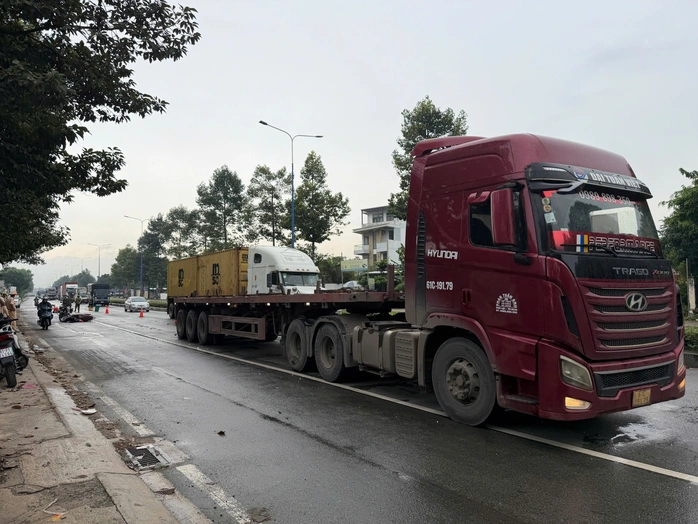 Chiếc xe container chạy cùng chiều không may cán chết người phụ nữ