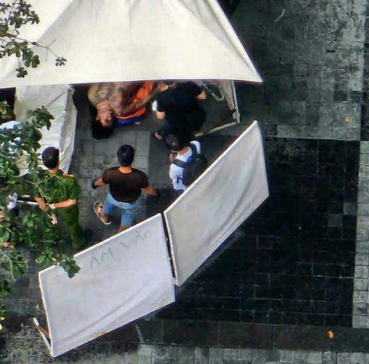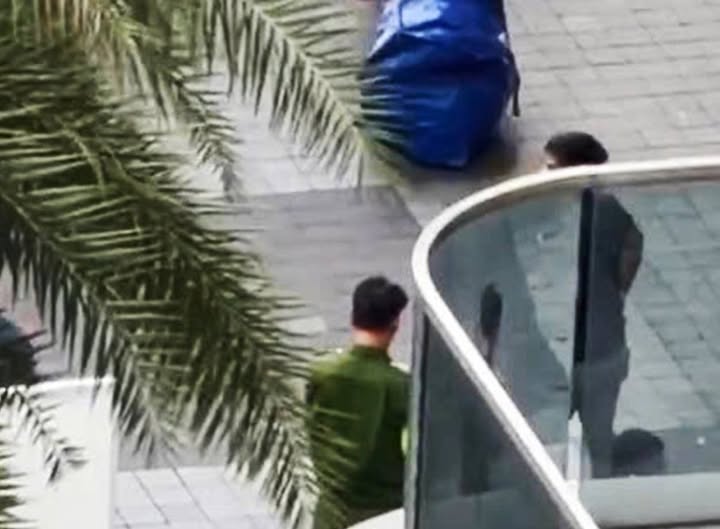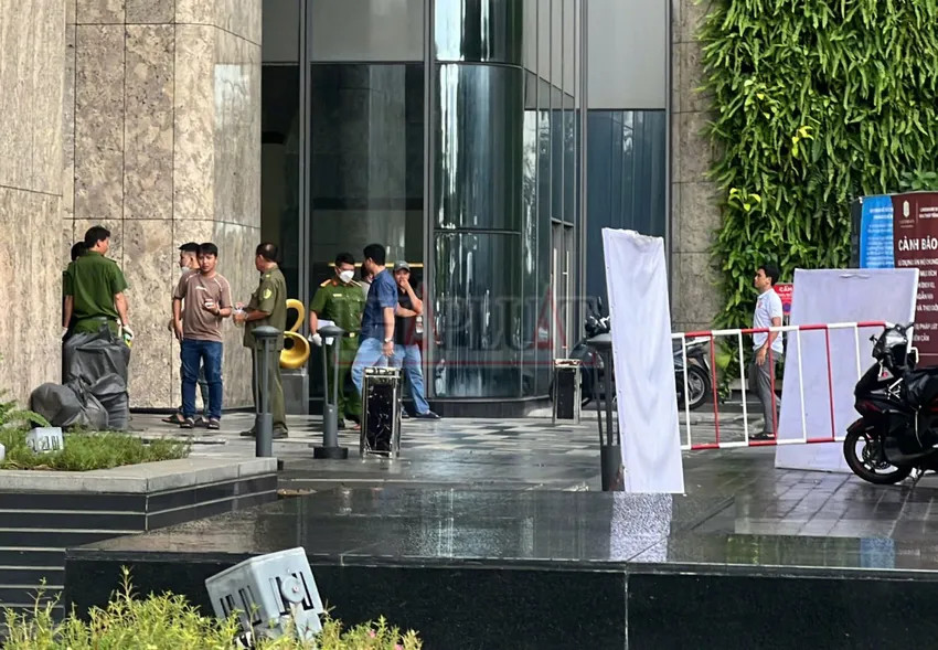Trước đó, vào đầu giờ chiều, người dân ở sảnh tòa nhà nghe tiếng huyên náo nên chạy tới và được biết có hai người đàn ông mang theo túi màu xanh, valy rời khỏi tòa nhà. Một số người xung quanh phát hiện dấu hiệu bất thường cùng mùi lạ giống mùi hôi nên giữ lại kiểm tra.