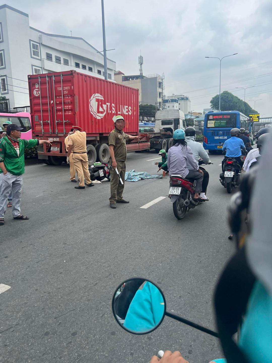 Nhận tin báo, lực lượng chức năng, CSGT có mặt giải quyết hiện trường, điều tiết giao thông.