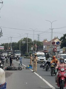 Va chạm giữa xe tải và xe gắn máy, khiến 01 nạn nhân #Nữ T.V. ta!i ch,ỗ. 01 người đang cấp cứu tại TTYT. Phú Mỹ.